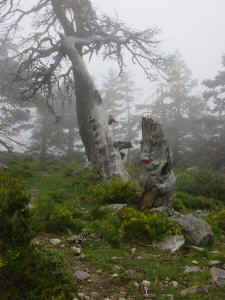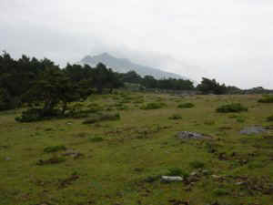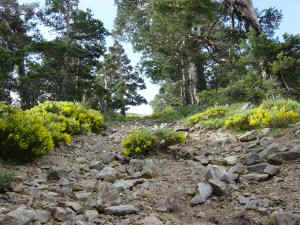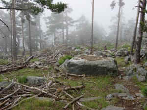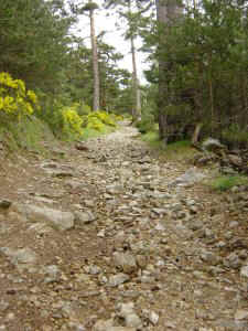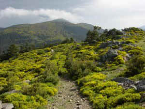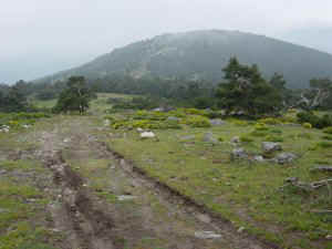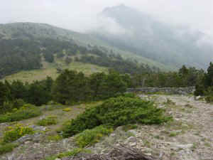 | Continuaremos guiándonos por las marcas del GR-10 en el descenso hacia el Collado de Cerromalejo atravesando un paraje un tanto dantesco en el que cientos de pinos yacen derribados en el suelo hasta alcanzar el Collado de Cerromalejo |