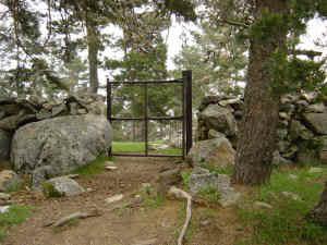Continuaremos la ruta en paralelo a la tapia y en suave ascenso coronaremos la Peña del Cuervo (1706m) ceñidos al muro defensivo, pasando junto a un bunker, aquí la divisoria provincial es sustituida por una alambrada que atravesaremos hacia el lado madrileño. |