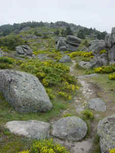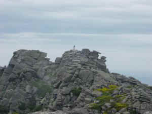 Para acceder a la segunda peñota (La de más altura) nos guiaremos por las marcas del GR-10 y pequeños hitos de piedras, que nos irán conduciendo entre los grandes bloques de piedras y tras alguna que otra pequeña trepada alcanzaremos el cilindro del eje geodésico de su cima. De nuevo una sensación indescriptible nos embriagara al contemplar las vistas a nuestro alrededor. |