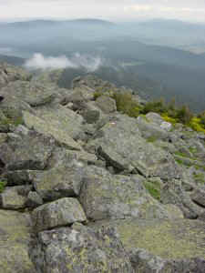 Seguiremos por el lado madrileño durante toda la subida al Cerro de Matalafuente (1674m), en cuya cumbre volveremos a pasar al lado segoviano iniciando una bajada de unos 160 m. De desnivel siguiendo los pequeños hitos de piedra y las difusas marcas del Gr-10, que serpentean durante toda la bajada |