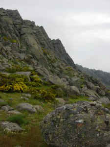 que una vez pasada la tercera Peñota nos baja por un canchal en el lado segoviano, en un descenso pronunciado hasta el collado de Gibraltar (1691m). |