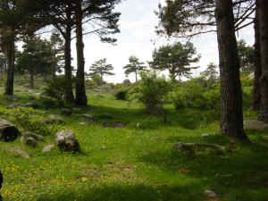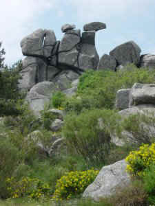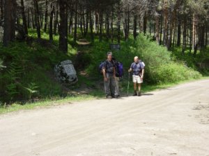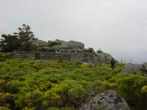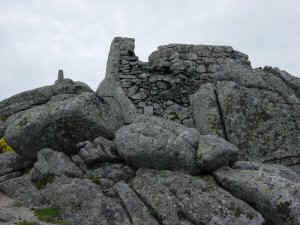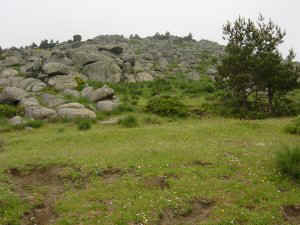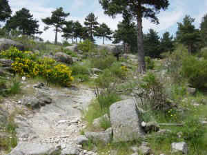 Alcanzado el collado delante tenemos la subida al cerro del Mostajo (1717m) aquí observaremos a nuestra derecha huellas de la guerra civil, una trinchera de piedras en las que se abren las bocanas para los fusiles y ametralladoras, también son numerosos los nidos de ametralladoras algunos en buen estado de conservación, al igual que puestos de mando y pequeños bunker. |