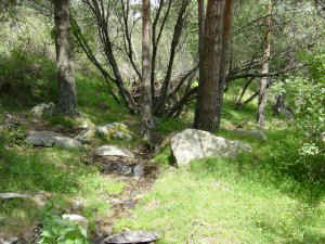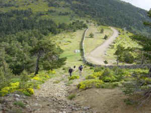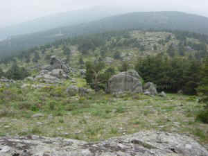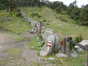 De nuevo siguiendo las marcas del GR-10 continuaremos la marcha descendiendo al Collado del Mostajo (1647m) (Desviándonos un poco hacia el lado segoviano tenemos un pequeño manantial). |