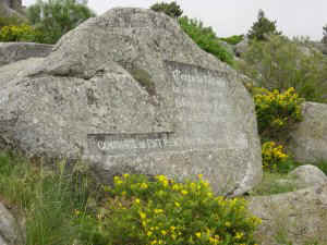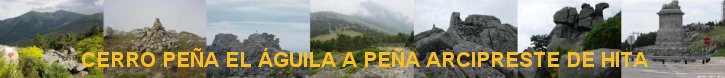 | hasta que nos sea visible a nuestra izquierda el collado del Arcipreste de Hita, nos dirigiremos hacia la Peña del Arcipreste hasta llegar nuevamente a la alambrada, la cual franquearemos y en unos veinte metros por el lado de la izquierda podremos acceder a la base de la Peña y leer sus piedras cinceladas, |