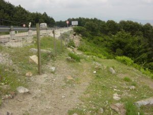 | una vez alcanzada de nuevo la alambrada junto a la carretera seguiremos una pequeña senda que discurre en paralelo a la carretera y en unos 200m. alcanzaremos una portilla en la alambrada que nos dará acceso al aparcamiento del restaurante Alto del León dando por finalizada la ruta. |